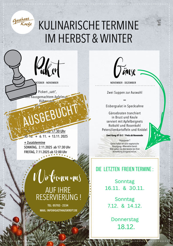 Vorspeise, eine Suppe sowie 2-4 Hauptgänge